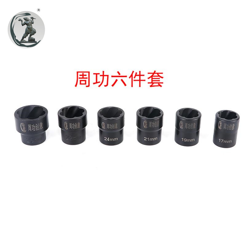 周功根據市場及客戶需求,自主研發(fā)的一種集經濟、高效、實用新型拆卸汽車(小轎車)防盜螺絲及普通螺絲拆卸專用套筒